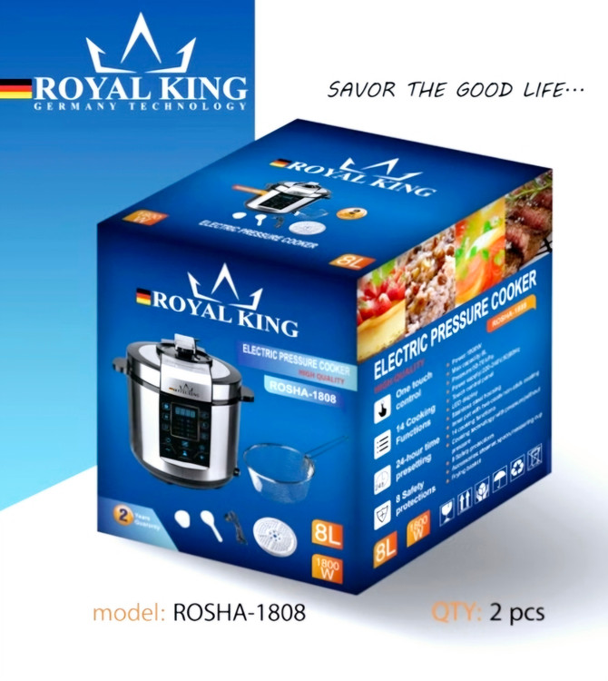 🎯 در یک نگاه، رویال کینگ مدل ROSHA-1808 فراتر از یک زودپز ساده است—یک همراه مدرن برای هر آشپزخانه، که با ترکیب تکنولوژی، زیبایی، و کارایی، تمام نیازهای پختوپز را در یک دستگاه گردآورده است.