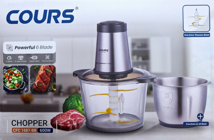 این خردکن خوشساخت از برند کورس، با طراحی دوکاسه، تیغههای تیتانیومی و ظرفیت بالا، به یکی از انتخابهای محبوب در میان کاربران خانگی و نیمهحرفهای تبدیل شده است. ترکیب قدرت، زیبایی و ایمنی در این مدل، آن را به ابزاری کاربردی و قابل اعتماد برای آشپزخانههای مدرن بدل کرده است.