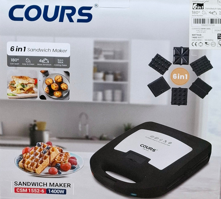 ساندویچساز ششکاره کورس مدل CSM 1552-6 یک دستگاه چندمنظوره و حرفهای برای آشپزخانههای مدرن است که با طراحی هوشمند، عملکرد قدرتمند و تنوع در صفحات پخت، تجربهای متفاوت از تهیه غذاهای سبک، شیرینیهای خانگی و گریل سالم را فراهم میکند.