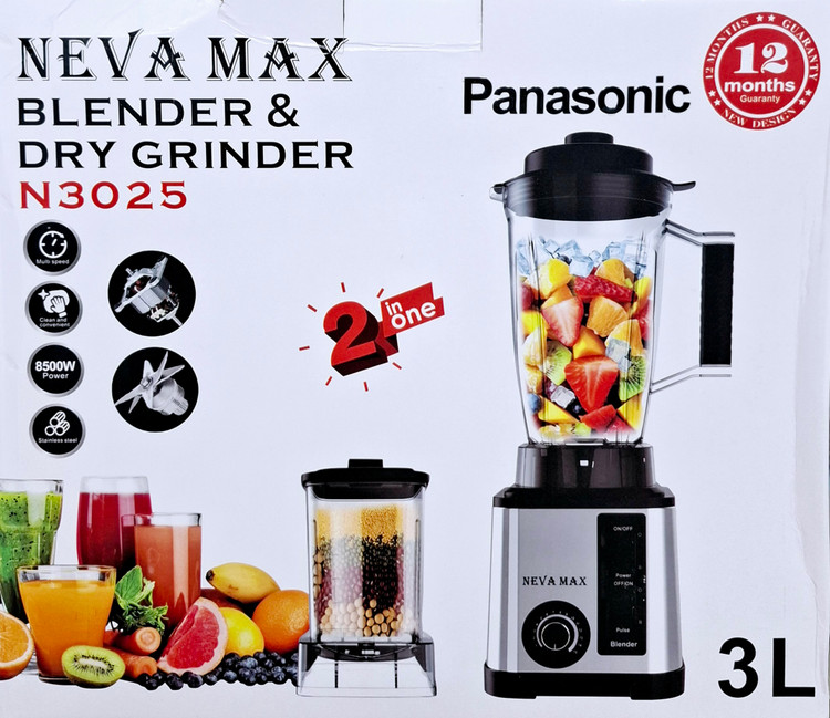 مخلوطکن و آسیاب مدل N3025 از برند معتبر Panasonic، دستگاهیست که با ورودش به آشپزخانه، تعریف جدیدی از عملکرد و کیفیت ارائه میدهد. این مدل با توان ۸۵۰۰ وات، ظرفیت ۳ لیتر و طراحی چندمنظوره، نهتنها یک ابزار آشپزیست، بلکه یک تجربه حرفهایست.