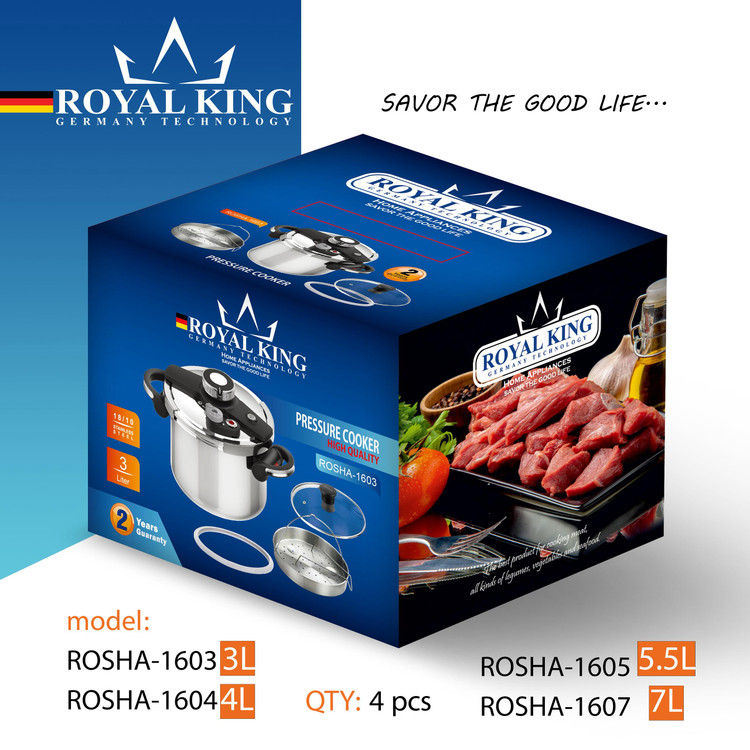 👑 زودپز کلیپسی رویال کینگ مدل ROSHA-1603 – ترکیب هنر و فناوری در آشپزخانه شما